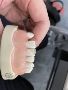 今回は2日にわたり、前歯コンポジットレジン修復(合成樹脂による治療)、前歯支台歯形成について、歯の形態・機能・色の見方等の座学から始まり、実際に模型上で実習をしながら細かく丁寧に指導いただきました。