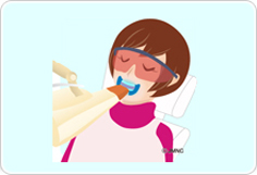 光に反応するホワイトニング剤を歯に塗り、歯科医院にて施術を行います。